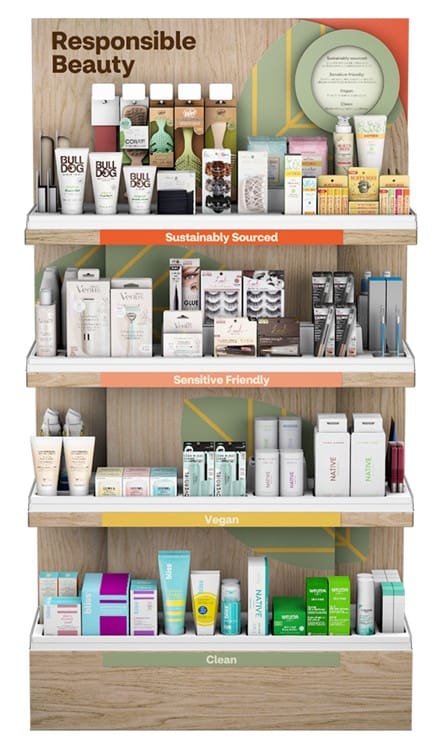 The Responsible Beauty display serves as a testament to our seamless integration of sustainable products, manufacturing practices, and consumer education within the beauty landscape.