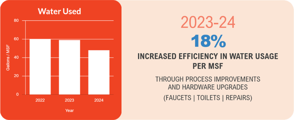 Our corporate environmental reduction goal is to reduce energy, water, & waste by 15% by 2035 (baseline year of 2023)