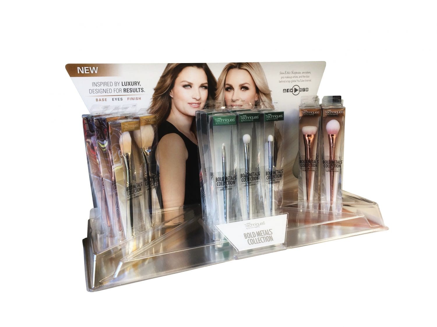 Our temporary and permanent displays include molded organizers, customized stock tooling, destination promotional end caps, floor displays, illuminated graphics and shelving, interactive technology and PDQs. We proudly provide the most innovative and flexible corrugated solutions for the beauty industry. Take a look at some examples of our past work and beauty product packaging below.